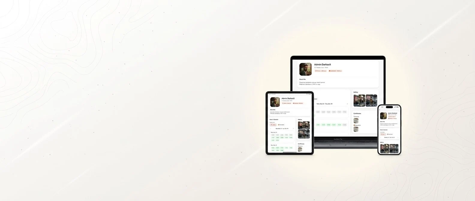 Your professional page with portfolio, reviews, and a booking button. Share the link everywhere.